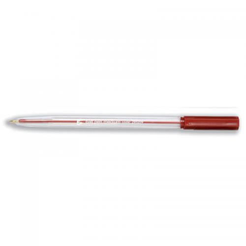 • 5 Star Office Ball Pen Clear Barrel Medium 1.0mm Tip 0.7mm Line Red Pack of 50 295209