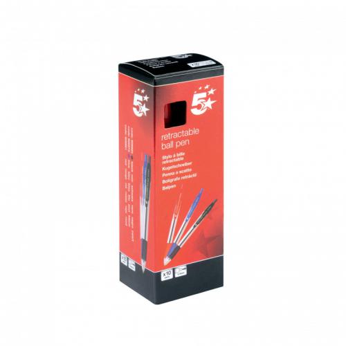 We compared the price of this 5 Star Office Retractable Grip Ball Pen Medium 1.0mm Tip 0.4mm Line Blue Pack of 10 909973 with some of our competitors on the dates below*
