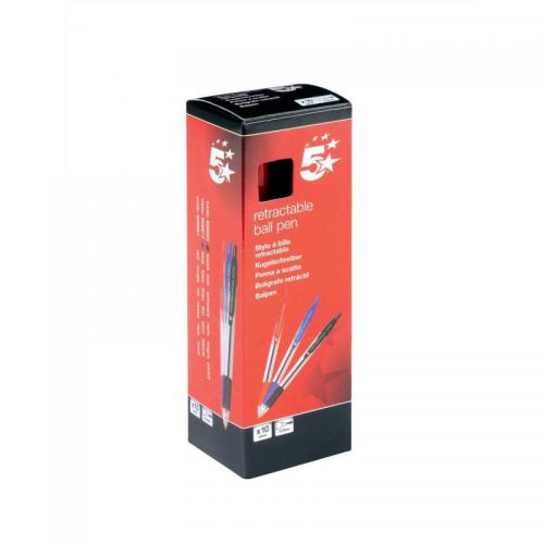 1. 5 Star Office Retractable Grip ball pens are designed for high quality writing, suitable for offices, schools and home writing. Smooth flowing long lasting ink means they can be used for archival material without fading. Clear shatterproof barrel allows for viewing ink usage with colour coded clip and pen top to match the ink. Ribbed rubber finger grip for additional comfort.
