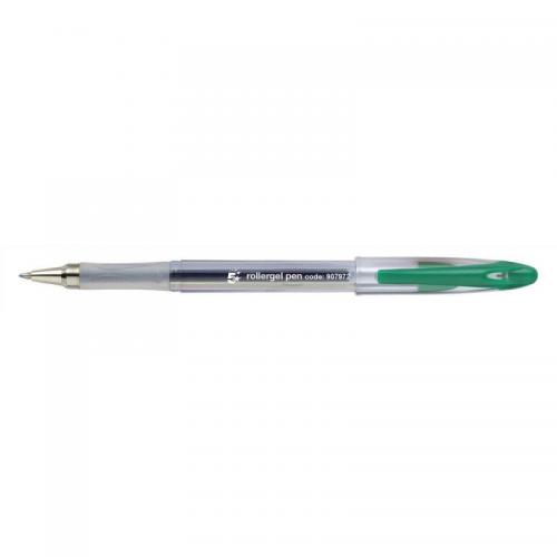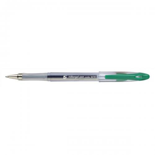 • 5 Star Office Roller Gel Pen Clear Barrel 1.0mm Tip 0.5mm Line Green Pack of 12 907972