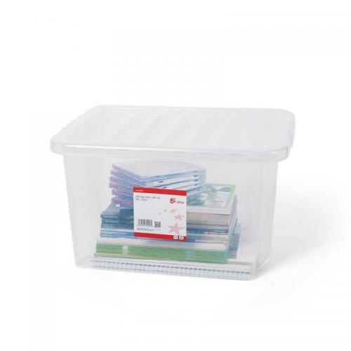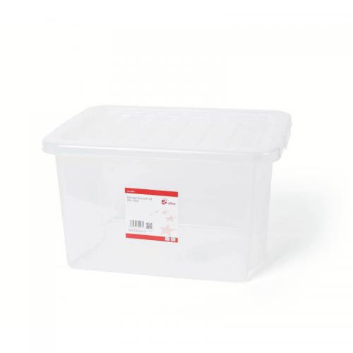 • 5 Star Office Storage Box Plastic with Lid Stackable 24 Litre Clear 930677