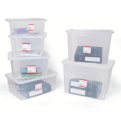 1. 5 Star Office Storage Boxes are ideal for business and home office storage, with an array of sizes available to meet your storage requirements from small items of stationery and paper, up to lever arch files, ring binders and computer equipment. The boxes are clear to allow for easy identification of the contents and are strong and tough to ensure durability. The boxes can be nested when empty minimising the space that they take up and can be stacked when in use.