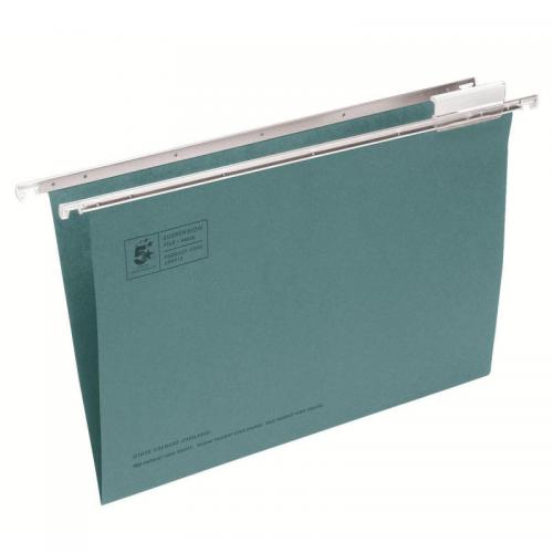 • 5 Star Office Suspension File with Tabs and Inserts Manilla 15mm V-base 180gsm Foolscap Green Pack of 50 296913