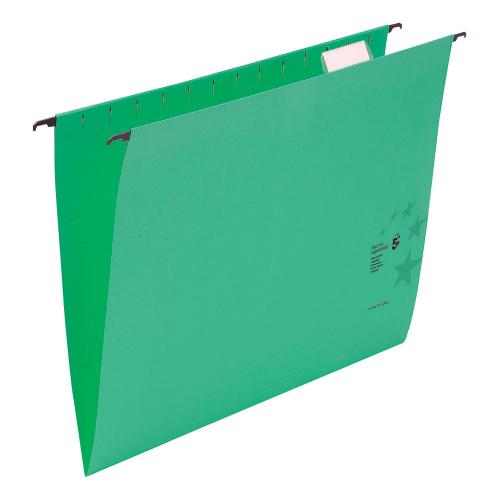 • 5 Star Office Suspension File with Tabs and Inserts Manilla 15mm V-base 230gsm Foolscap Green Pack of 50 913276