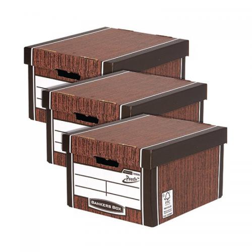 1. This environmentally friendly Fellowes premium classic storage box is made from 100% recycled board and is ideal for storing records and archiving documents. Featuring unique Presto Instant Assembly, simply push the corners together and the box is ready for use.This premium box features double ends, sides and base, for maximum stacking strength up to 6 high. These corrugated cardboard storage boxes accommodate A4 and foolscap documents, folders, ring binders and Premium transfer files and are the perfect height for racking systems. Measures W330 x D381 x H254mm. This pack contains 15 boxes (3 packs of 5 for the price of 2).