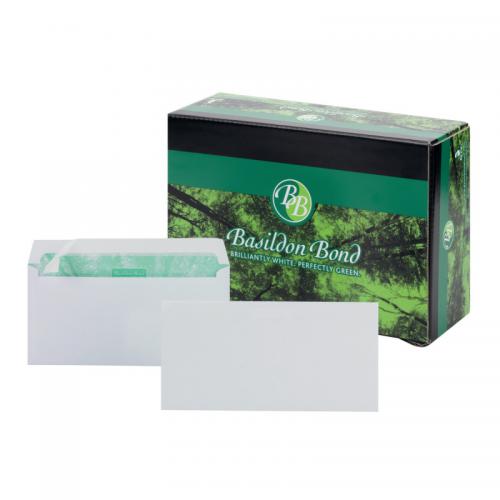 1. These environmentally friendly Basildon Bond envelopes are made from smooth white, 100% recycled 120gsm paper. With a simple and secure peel and seal closure, these envelopes are suitable for A5 sheets folded once, or A4 sheets folded twice. This pack contains 500 white DL envelopes.