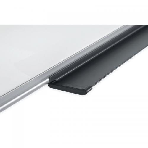 1. This Bi-Office Aluminium Finish Drywipe Board is ideal for use in any workplace. The smooth writing surface is double-sided, meaning that ideas and pointers can stay in place on one side of the board while you write on the other side. The aluminium frame features a choice of plastic corner caps in various colours to match any decor, and there is also a clip-on pen tray so you will always have a marker pen handy. This whiteboard measures 600x450mm.