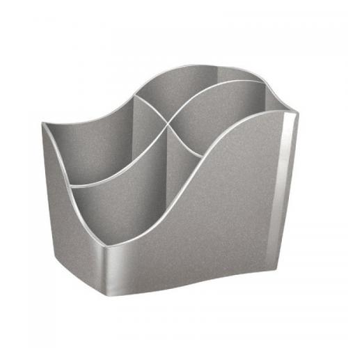 1. This elegant CEP Ellypse Xtra Strong Pencil Cup has a unique S shaped design, which enables easy retrieval of contents and matches other products in the Ellypse Xtra Strong range. Made from recyclable, shock resistant polystyrene, this pencil cup has 4 compartments and can accommodate up to 45 pens. This pack contains 1 taupe pencil cup measuring W118 x D89 x H98mm.
