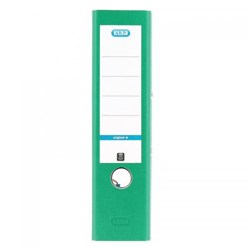 1. This Elba file features a standard lever arch mechanism with a 70mm capacity for filing A4 documents. Made from strong board, the file features a metal reinforced edge and metal thumb hole for easy retrieval from a shelf. This pack contains 10 green lever arch files, ideal for colour coordinated filing.