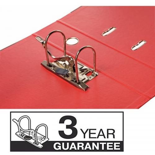 1. This Esselte lever arch file contains a patented No.1 filing mechanism with outstanding locking force to keep A4 documents secure. The file has a 75mm spine and can hold up to 500 sheets of 80gsm paper. The file also features durable polypropylene covers, a metal thumb hole for easy retrieval from a shelf and metal edges for long lasting use. This pack contains 10 burgundy A4 lever arch files.