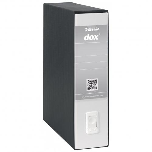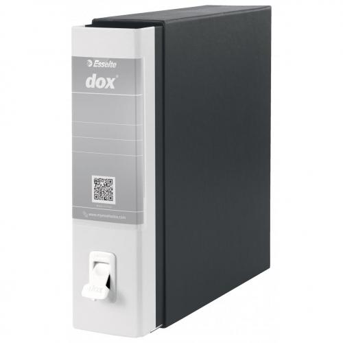 1. Esselte Dox 1, the smart and professional A4 Lever Arch files that wonandrsquo;t andlsquo;topple overandrsquo; and will never let you down! Perfect for organising and archiving your documents. The unique sleeve provides a tidy finish. The 80mm wide spine holds up to 600 A4 sheets (80 gsm), with reversible spine label in transparent pocket, allowing you to reuse the label while maintaining a professional and legible label. Made from heavy weight recycled board covered with black embossed paper. A unique extra-strong pull tab on the spine allows easy shelf retrieval and metal edged corners protect and prevent scuffing the file. Available in a choice of classic 3 colours.