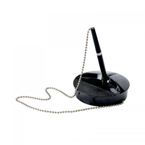 1. Create fixed writing points on desks, receptions and workstations with this Fellowes ballpoint pen and chain. The weighted base and sturdy chrome chain prevents loss and theft, allowing you to provide facilities for your customers, employees and visitors. The pen is refillable to offer long term use around your site for filling out forms, updating logs, or recording information on a daily basis. This pack contains 1 pen with a black barrel and base, and blue ink.