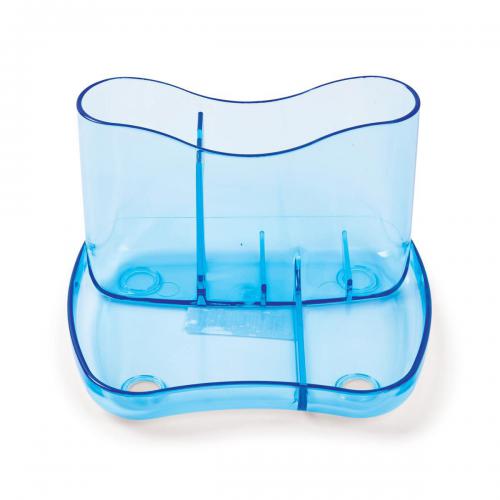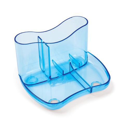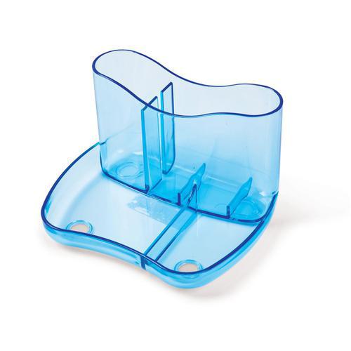 • Glass Clear Desk Organiser 4 Compartments 93mm High Glass Clear Blue 157576