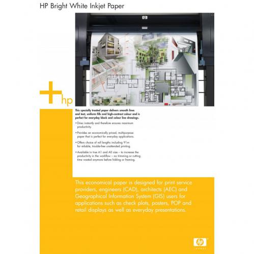• Hewlett Packard HP White Coated Inkjet Paper A1 594mm Continuous Roll 90gsm Q1445A