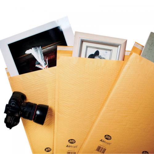 1. These Jiffy Airkraft padded mailers are lightweight and economical to help keep postage costs down. The mailers feature a fully laminated lining of Astro SupraBubble for extra strength and puncture resistance, and a strong self-seal closure. Ideal for mailing delicate or fragile items, the mailers are also impact resistant for protection during transit. These size 0 mailers measure 140 x 195mm. This pack contains 100 gold mailers.