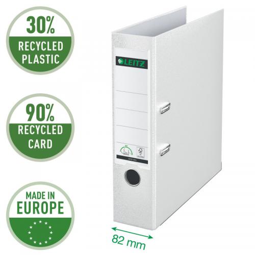• Leitz 180 Lever Arch File Polypropylene A4 80mm Spine Width White (Pack 10) 10101001 20227ES