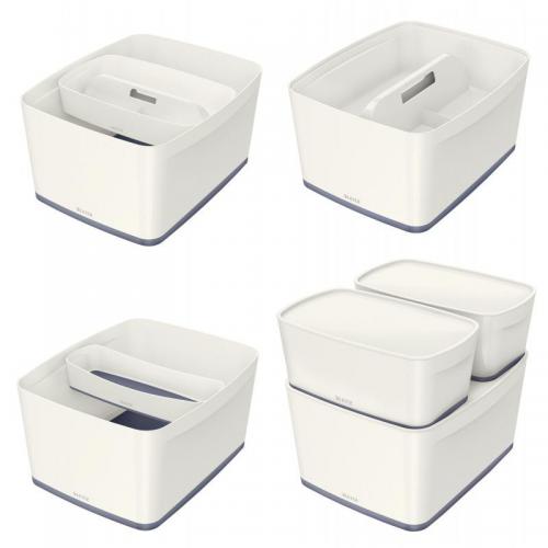 • Leitz MyBox Large with lid, Storage Box 18 litre, W 318 x H 198 x D 385 mm. White/grey - Outer carton of 4