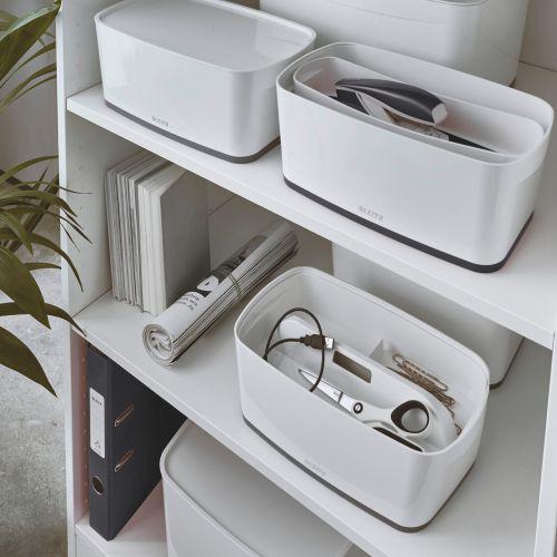 1. The Leitz MyBox modular storage system lends an unique style to your home or office. The storage box is sturdy and made of premium quality material in a high gloss finish with a dual colour effect. For quick, easy and attractive storage of A5 documents and various accessories. The modular system allows for optimal content management solutions. Complements dual colour products from the Leitz WOW range.