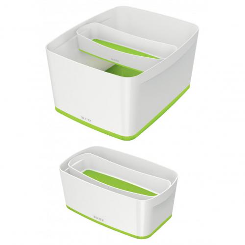 1. The Leitz MyBox modular storage system lends a unique style to your home or office. The small storage tray is sturdy and made of premium quality material in a glossy finish with a dual colour effect. Made for desktop or in-drawer use. Compatible with Leitz MyBox Large or Small for optimal organisation of pens, smaller items and foodstuffs. Complements dual colour products from the Leitz WOW range.