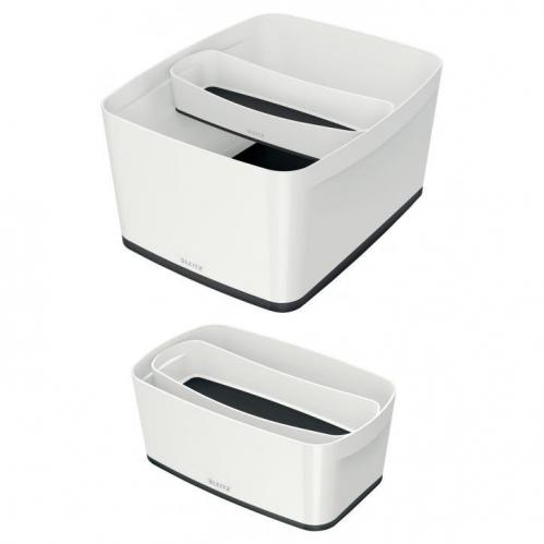 1. The Leitz MyBox modular storage system lends a unique style to your home or office. The small storage tray is sturdy and made of premium quality material in a glossy finish with a dual colour effect. Made for desktop or in-drawer use. Compatible with Leitz MyBox Large or Small for optimal organisation of pens, smaller items and foodstuffs. Complements dual colour products from the Leitz WOW range.