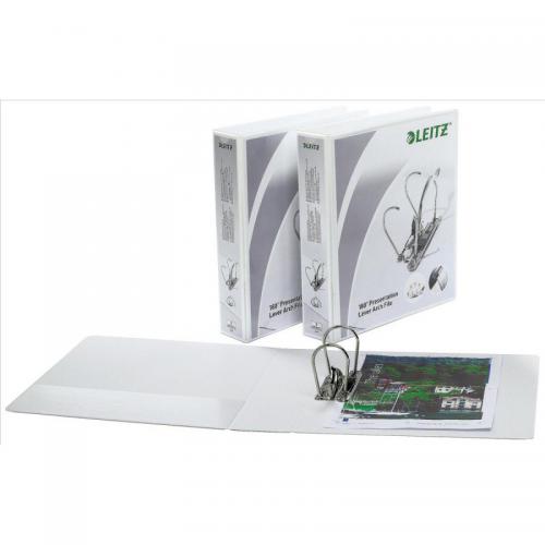 • Leitz Presentation Lever Arch File 180 Degree Opening 80mm Spine A4 White 42250001 Pack of 10 817545