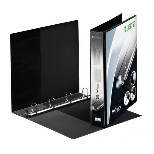• Leitz SoftClick 4 Ring Binder, Holds up to 280 Sheets, 51 mm Spine, A4, Black - Outer carton of 6