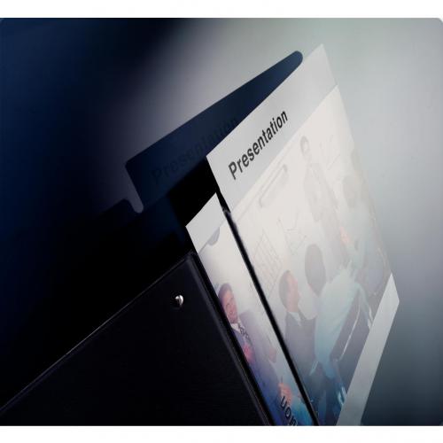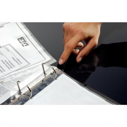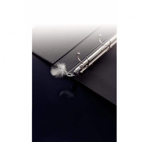 1. Premium ring binder with patented SoftClick, mechanism for easy opening using just a fingertip. The secure locking system prevents rings from opening unless lever is pressed, so documents do not fall out in transit. The embossed eco-friendly PP foil is glued on both sides and welded at the edges for a smooth finish, without air bubbles and waves.