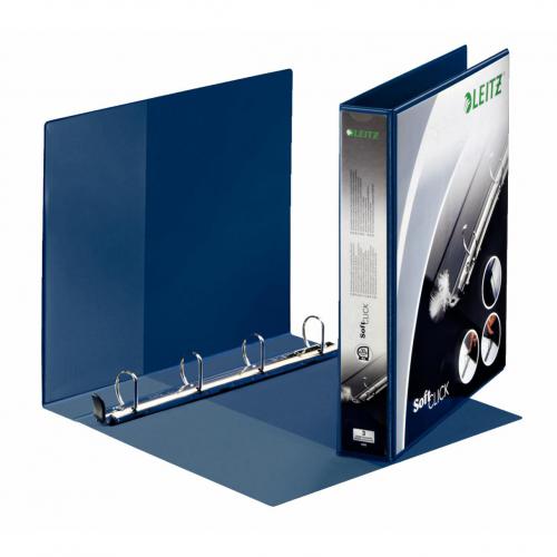 • Leitz SoftClick 4 Ring Binder, Holds up to 280 Sheets, 51 mm Spine, A4, Blue - Outer carton of 6