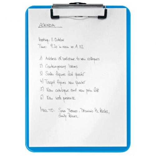 1. High quality polystyrol clipboard in vibrant WOW colours. Ideal for keeping paper secure. PS. Hanging hook. 75 sheet capacity. A4.