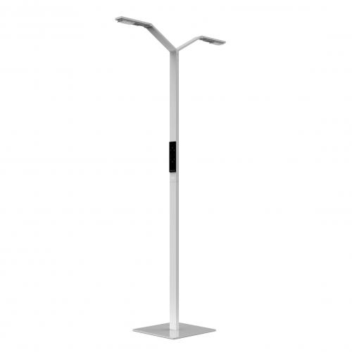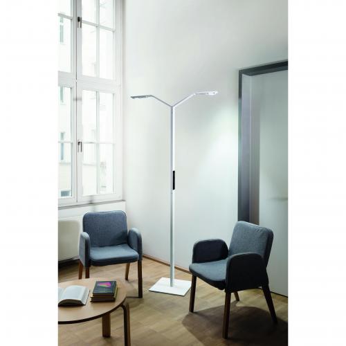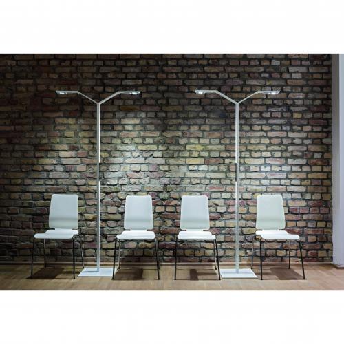 1. LUCTRA LINEAR FLOOR TWIN provides direct or indirect light for several workplace stations or collaboration areas. Each lamp head can be adjusted to suit the users own light intensity and colour settings by simply touching the electronic glass touch panel or via an app, available free for Apple and Android. LUCTRA is scientifically proven to enhance productivity and wellbeing by providing a light intensity and colour that closely replicates daylight.