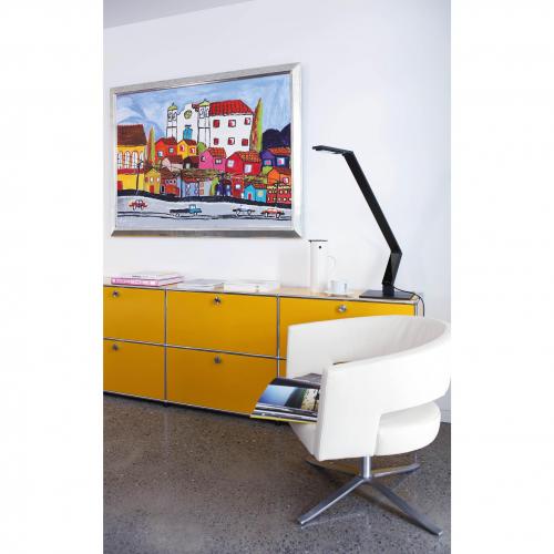 1. LUCTRA Table Pro is the de-luxe lamp with a contemporary finish and 70cm height. Light intensity and colour can be fully adjusted by the electronic glass touch panel or via an app, available free for Apple and Android. Two USB ports are featured which allows for charging of smart phones and tablets. LUCTRA is scientifically proven to enhance productivity and wellbeing by providing a light intensity and colour that closely replicates daylight.