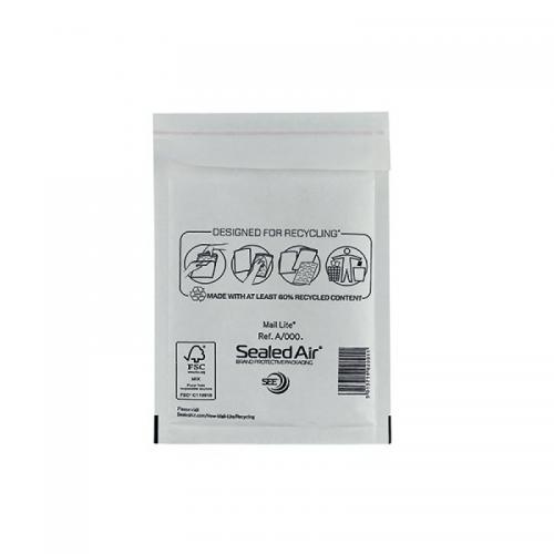 • Mail Lite Bubble Lined Postal Bag Size A/000 110x160mm White (Pack of 100) MLW A/000 MQ02001