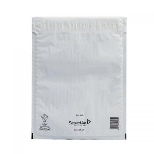 1. These Mail Lite Tuff cushioned mailers are made from polyethylene with a bubble lining to protect delicate and fragile items in transit. The polyethylene outer is tear, puncture and water resistant for improved protection. These G/4 mailers measure 240 x 330mm and feature a simple, convenient self seal strip. This pack contains 50 white mailers.