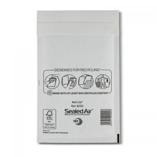 1. Mail Lite White B/00 bubble lined postal bag - box of 100
