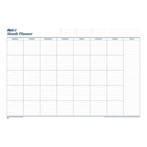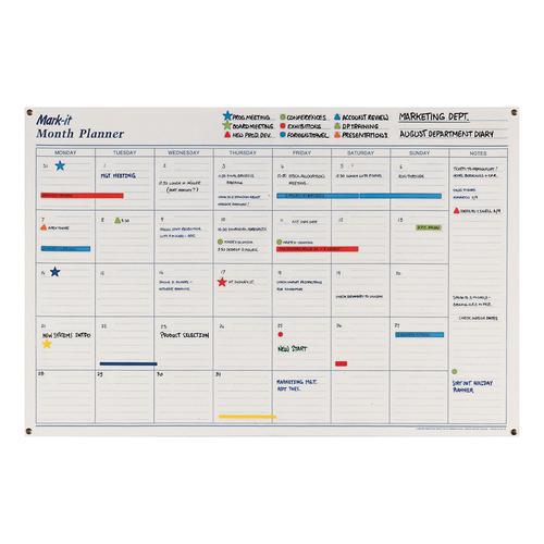 1. The Mark-it Month Planner is a visual planner to display in the office or home office. It is the ideal way to see the month at a glance - use it to plan tasks, note appointments, meetings and deadlines. A perfect planner to keep you on track that you can re-use month after month.