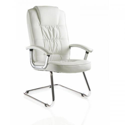 Moore Deluxe Visitor Cantilever Chair White Leather With Arms