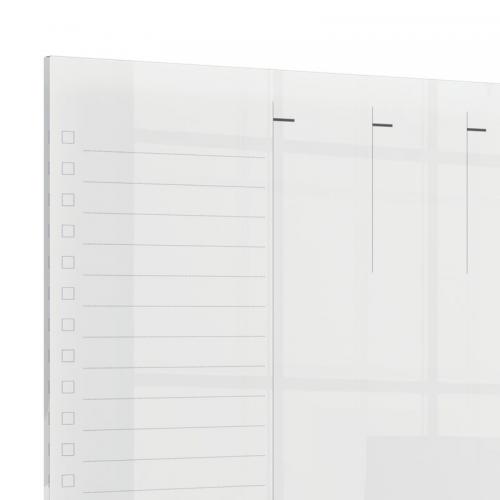1. This home office A4 whiteboard weekly planner with a modern frameless contemporary design and weekly planner grid is perfect for making notes, capturing thoughts, ideas or key dates. The clear acrylic whiteboard planner can be wall mountable using adhesive pads and magnets for metal surfaces or used flat on the desktop or worksurface. The transparent design means the memo board blends seamlessly into the background when not in use and the acrylic dry erase surface can easily be wiped clean to simply write, wipe away and start afresh. Supplied with whiteboard pen.