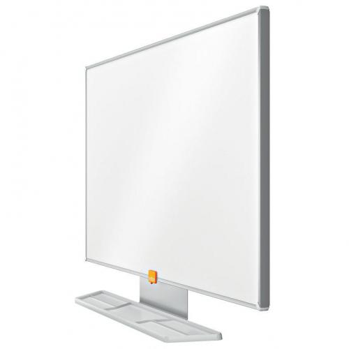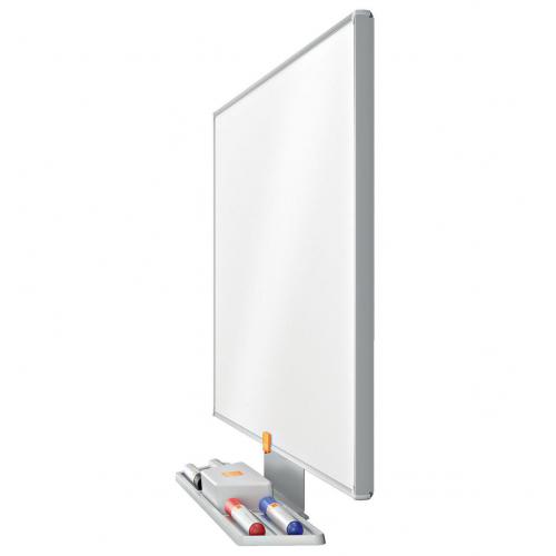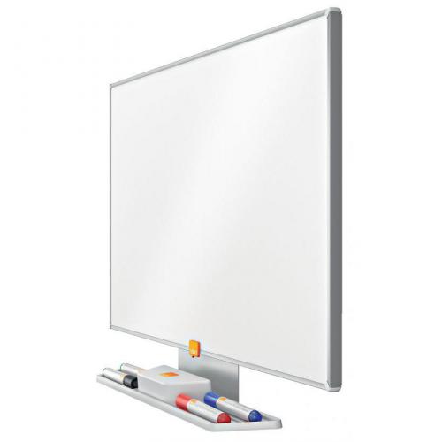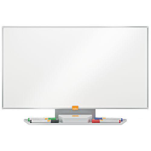 1. The Noboandreg; Widescreen Enamel Whiteboard will get your ideas noticed! The widescreen format and contemporary frame provide an expansive writing surface and the spacious pen tray sits below the board without encroaching on the board. The InvisaMount system makes installation easy and fixings are neatly concealed behind the board. Size: 32andrdquo;. The magnetic enamel whiteboard surface delivers a superior level of erasability for frequent use.