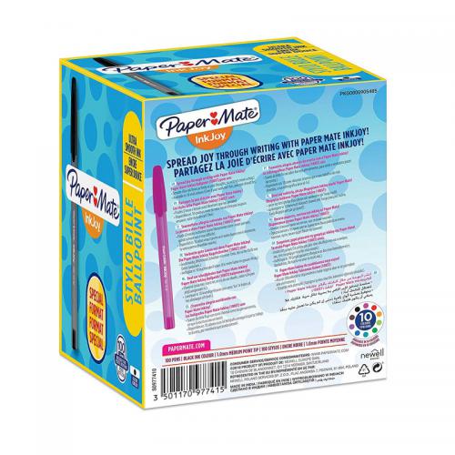 1. Spread joy with vivid colour: Paper Mate InkJoy 100 ballpoint pens have a smooth, fast-starting writing system that spreads ink easily so writingandrsquo;s never difficult. Even work or school is fun when you can enjoy a colour and ink that flows as freely as your thoughts. Brighten up every page and make writing more exciting with Paper Mate InkJoy ballpoint pens. Revolutionary Ink System that starts quickly without dragging, requires minimal pressure from your hand and delivers crisp clean lines every time. No smearing.