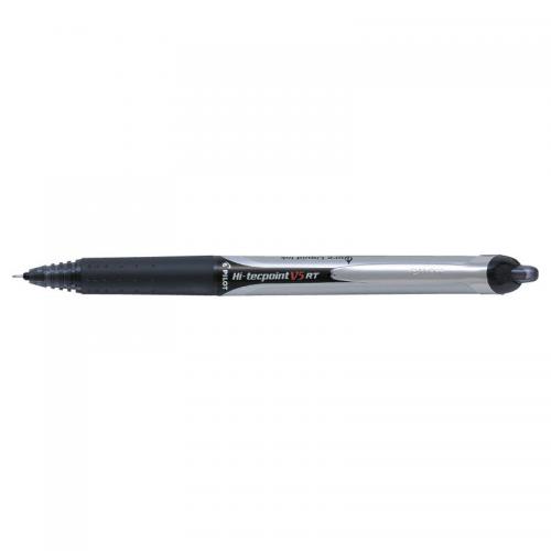 • Pilot Hi-Techpoint V5 RT Rollerball Pen Retractable 0.5mm Tip 0.3mm Line Black 105101201 Pack of 12 217588