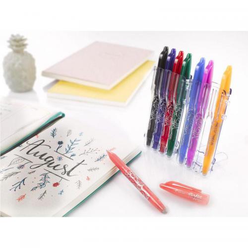 1. Pilot FriXion Set2Go Rollerball Pens have erasable thermo-sensitive ink which allows you to erase any mistakes you make using the rubber on the end of the pen. These rollerball pens are ergonomic and comfortable with a grip to help you control your pen. To help you do your bit for the planet, they are made of 50% recycled material and are refillable. The plastic case doubles as a desktop pen holder to keep your pens organised. This pack of eight pens includes one black, blue, red, green, sky blue, purple, coral pink and apricot orange pen.