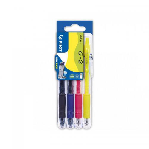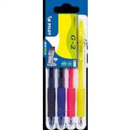 • Pilot Set2Go G-207 Retractable Gel Rollerball Pen 0.7mm Tip 0.39mm Line Black/Blue/Yellow/Neon Pink (Pack 4) 11438PT