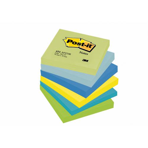• Post-it Colour Notes Pad of 100 Sheets 76x76mm Dreamy Palette Rainbow Colours 654MTDR Pack of 6