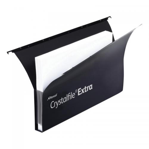 • Rexel Crystalfile Extra Secura Suspension File Polypropylene 30mm Foolscap Black 3000087 Pack of 20 384260