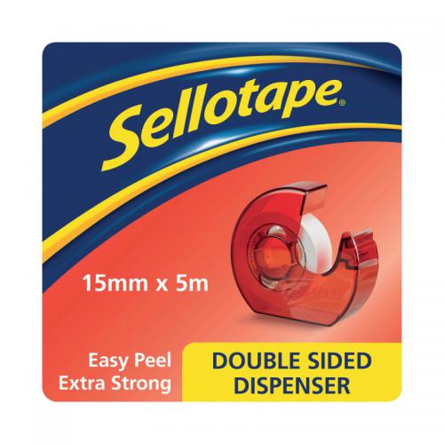 • Sellotape Double Sided Tape and Dispenser 15mm x 5m 1766008 SE4275