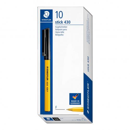 We compared the price of this Staedtler 430 Stick Ballpoint Pen 0.8mm Tip 0.30mm Line Black (Pack 10) 33296TT with some of our competitors on the dates below*
