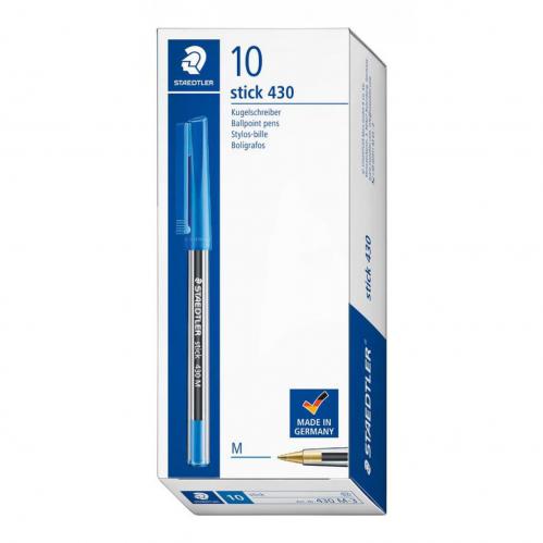 • Staedtler 430 Stick Ballpoint Pen 1.0mm Tip 0.35mm Line Blue (Pack 10) 33282TT