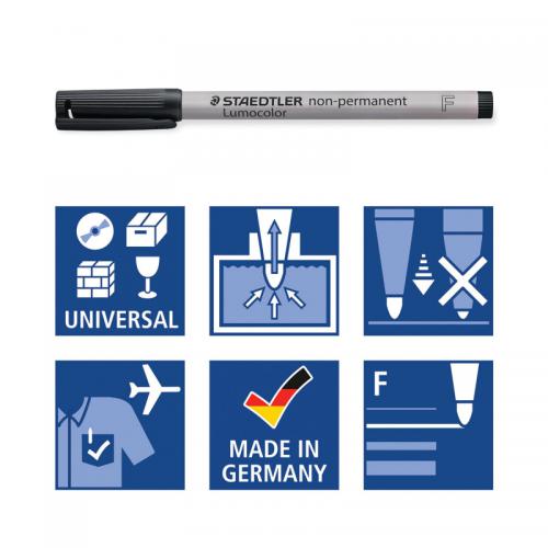 • Staedtler Lumocolour Pen Non-Permanent Fine Black (Pack of 10) 316-9 ST33212