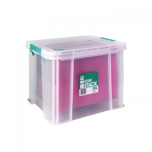 1. These heavy duty, stackable boxes provide a tough and durable storage solution for the office home or warehouse. The base and corners are reinforced for extra strength and durability, making them ideal for long term storage. The storage box can be stacked with or without the included lid for versatile use. The lid also includes location guides for non-slip, secure stacking. The box also contains handles, which clip the lid in place and make transportation easier. This 36 litre box has internal grooves, which accommodate both A4 and foolscap suspension files.