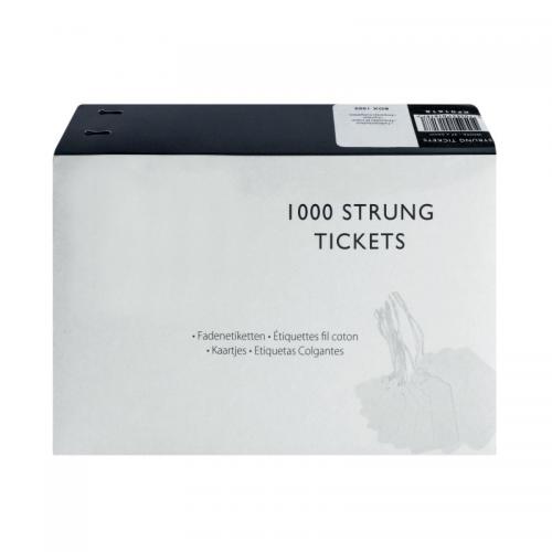 1. These strung tickets are ideal for car boot sales, jumble sales, crafts, retail, luggage, parcels and scrapbooks. Made of strong paper, these labels are pre-strung and include a reinforced eyelet that helps to prevent tearing. This bulk pack contains 1000 white tickets measuring 37 x 24mm.
